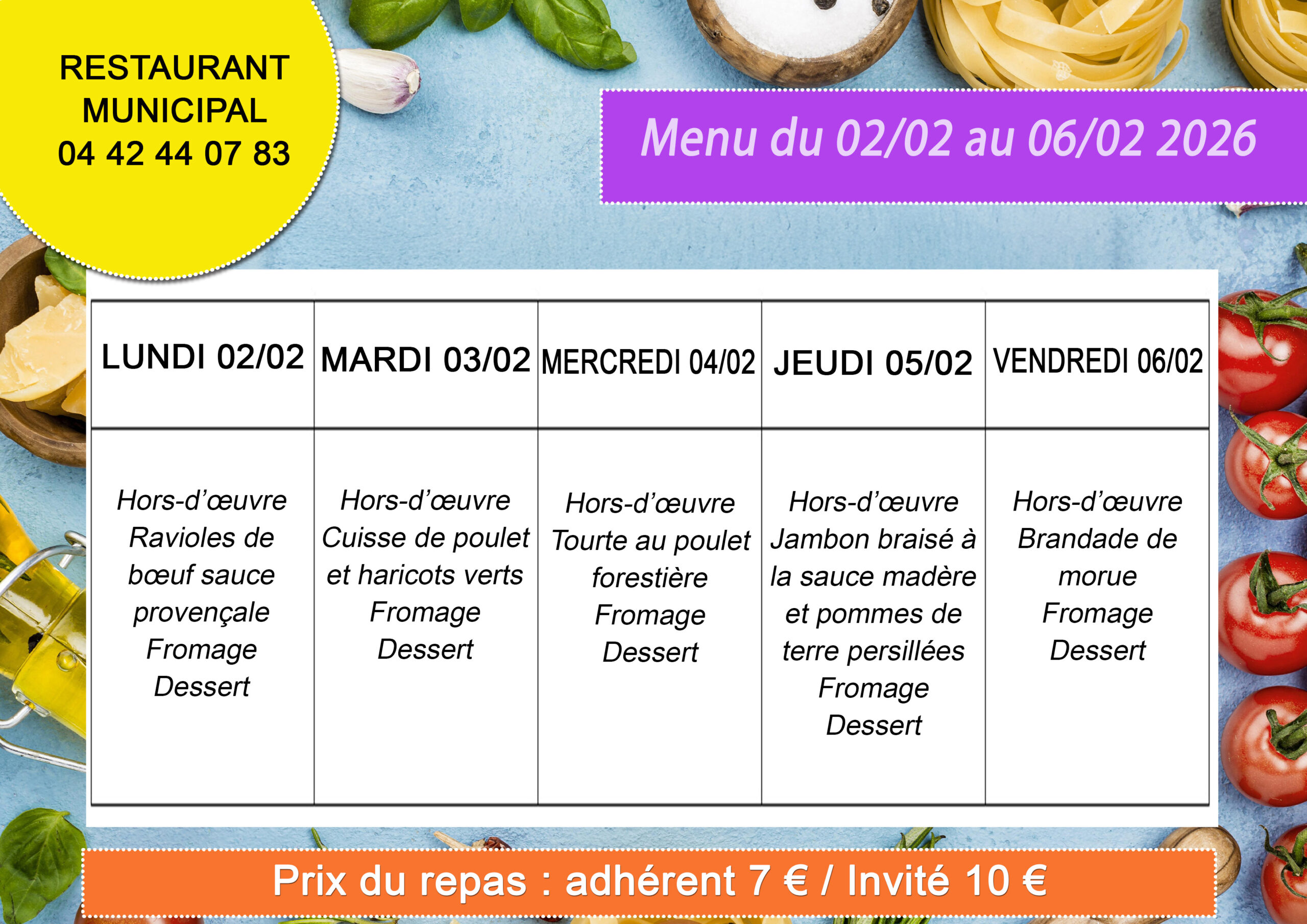 Retrouvez ci-dessous les menus du restaurant municipal